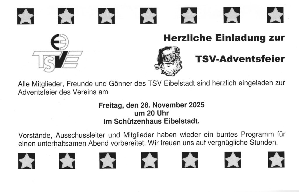 Einladung zur TSV-Adventsfeier am 28.11.2025 20:00 Uhr
